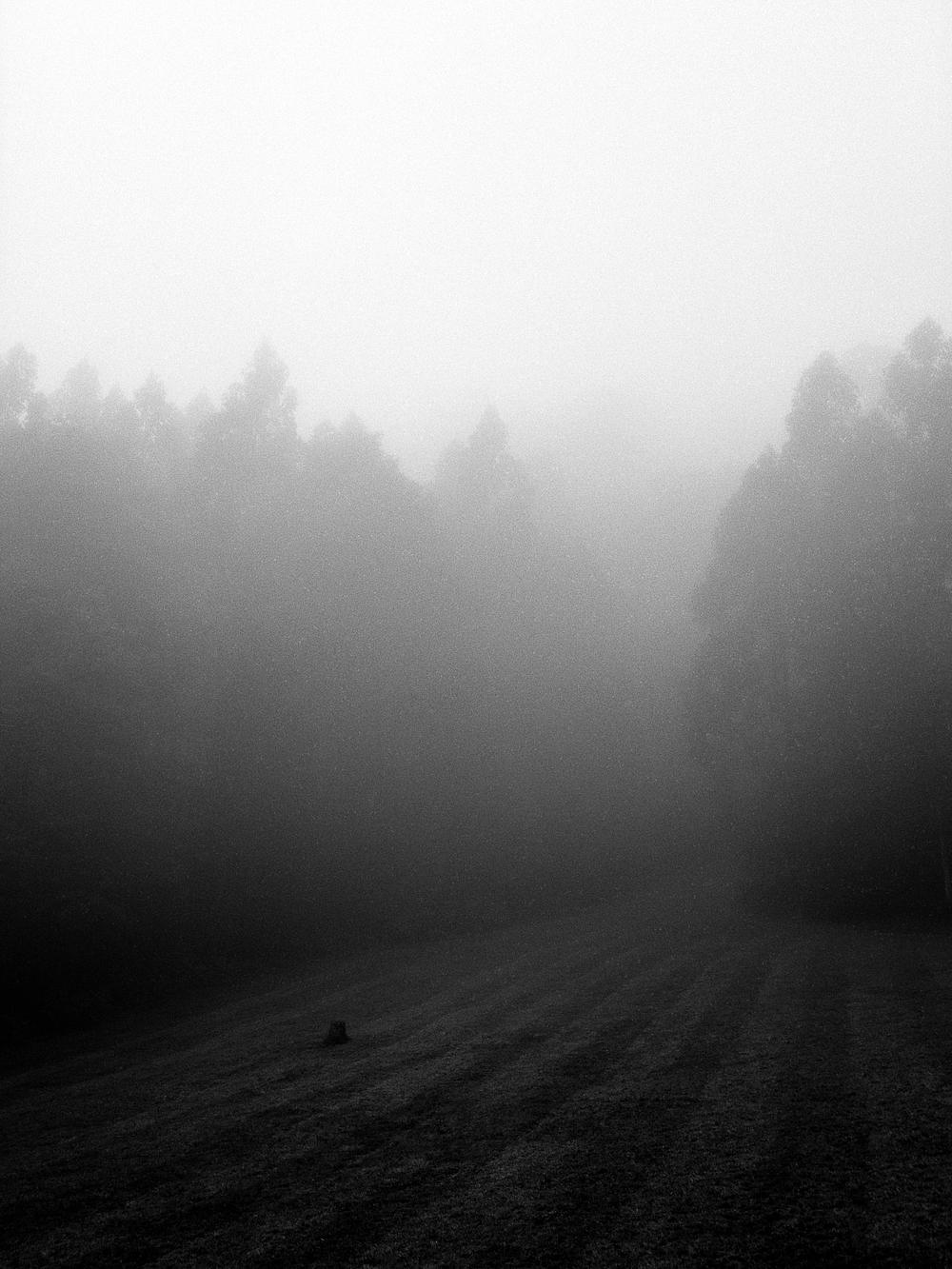 A moody image of morning fog, taken on medium format Ilford film.